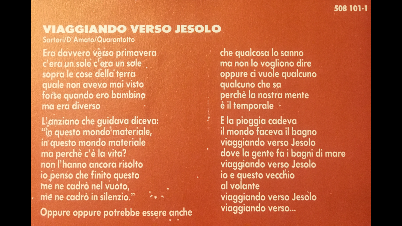 Posso immaginare che Viaggiando verso Jesolo trasfiguri la storia di un bambino che va al mare, a primavera, Jesolo è una località turistica.